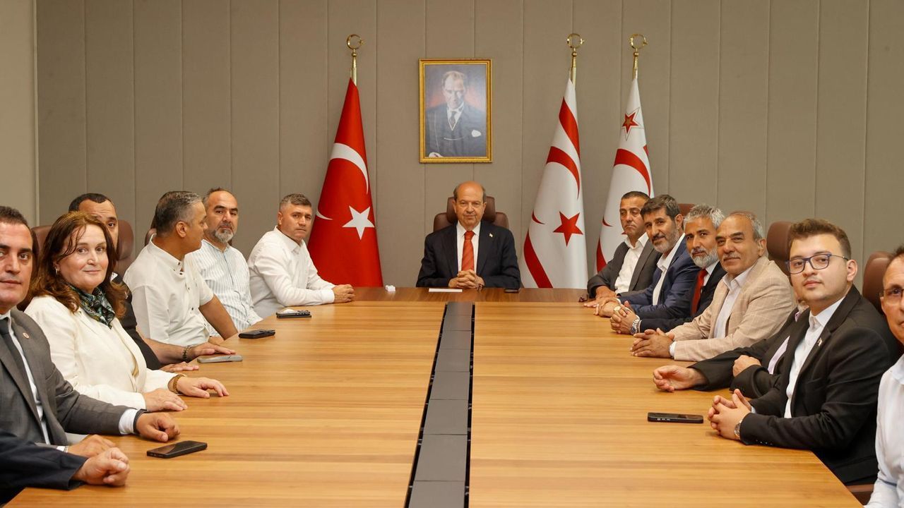 Cumhurbaşkanı Ersin Tatar, Milli İradeye Saygı Platformu Başkanı Talip Sancar ve yönetim kurulu üyelerini kabul etti.