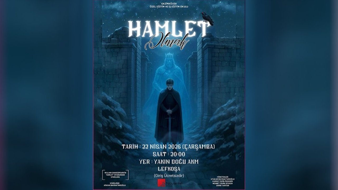William Shakespeare'in 'Hamlet' oyunundan uyarlanan tiyatro oyunu, saat 20.00'de Lefkoşa Yakın Doğu Üniversitesi (YDÜ) Atatürk Kültür ve Kongre Merkezi'nde sahnelenecek. Giriş, halka açık ve ücretsiz olacak.