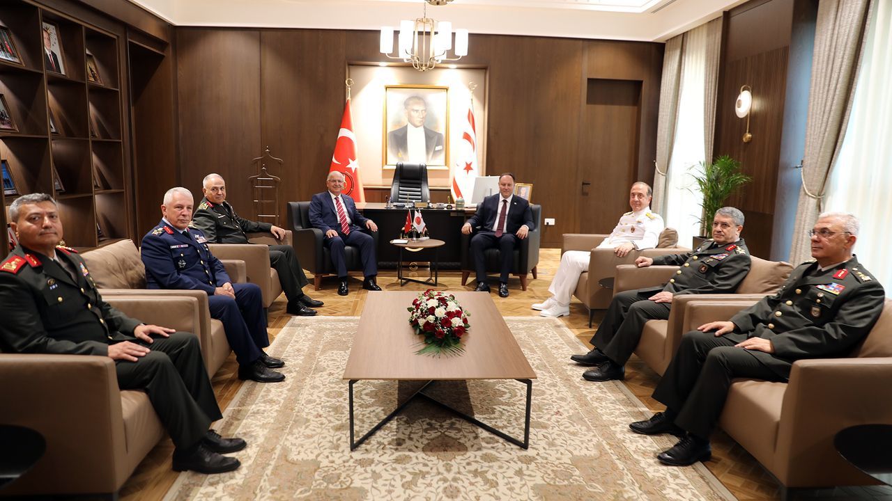 Cumhuriyet Meclisi’nden yapılan açıklamaya göre dün gerçekleştirilen kabulde, Genelkurmay Başkanı Orgeneral Metin Gürak, Deniz Kuvvetleri Komutanı Oramiral Ercüment Tatlıoğlu, Kara Kuvvetleri Komutanı Orgeneral Selçuk Bayraktaroğlu, Hava Kuvvetleri Komutanı Orgeneral Ziya Cemal Kadıoğlu, Kıbrıs Türk Barış Kuvvetleri Komutanı Tümgeneral Sebahattin Kılınç ve Güvenlik Kuvvetleri Komutanı Tümgeneral İlker Görgülü hazır bulundu.