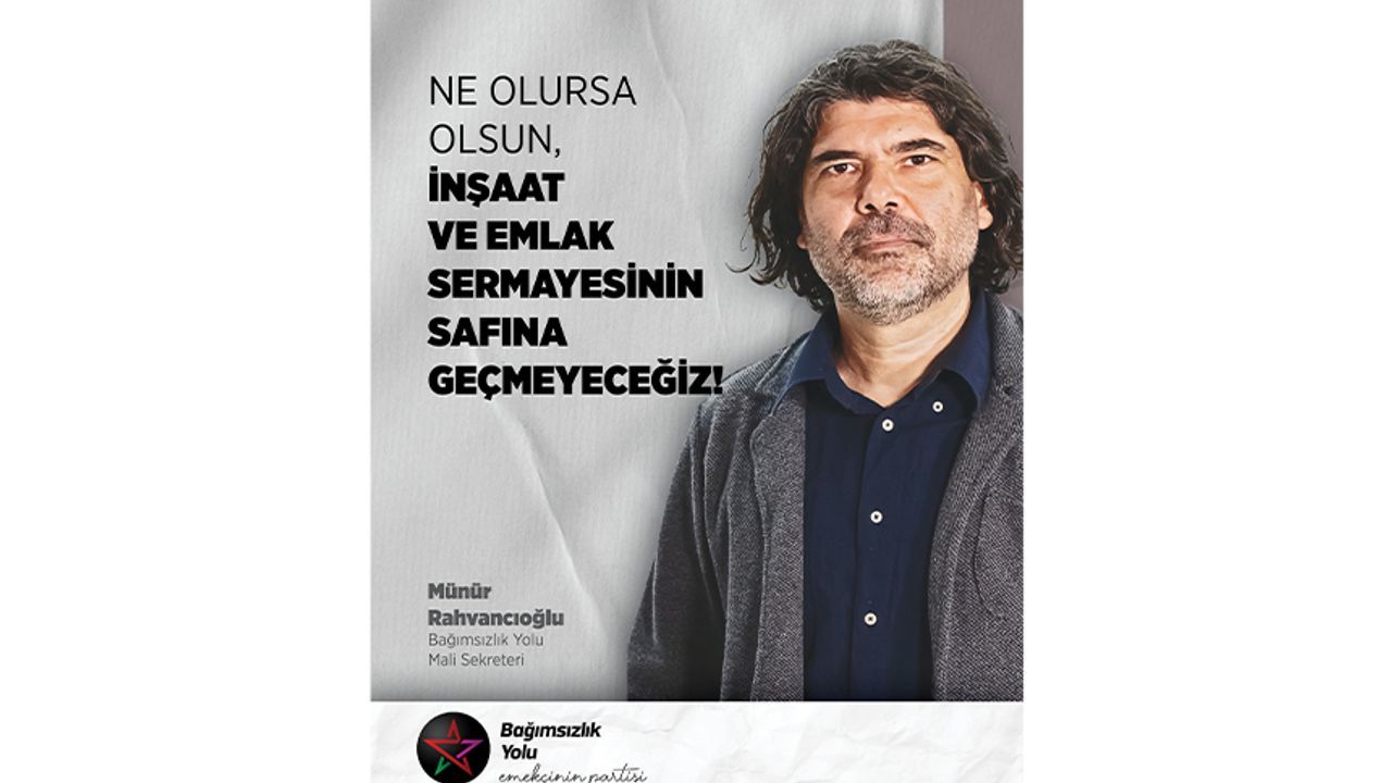 Bağımsızlık Yolu Mali Sekreteri Münür Rahvancıoğlu, inşaat ve emlak sektörünü, “doğaya ve emeğe karşı suçlar işlediği” gerekçesiyle eleştirdi, hiç bir zaman bu sektör ile aynı saflarda olmayacaklarını kaydetti.