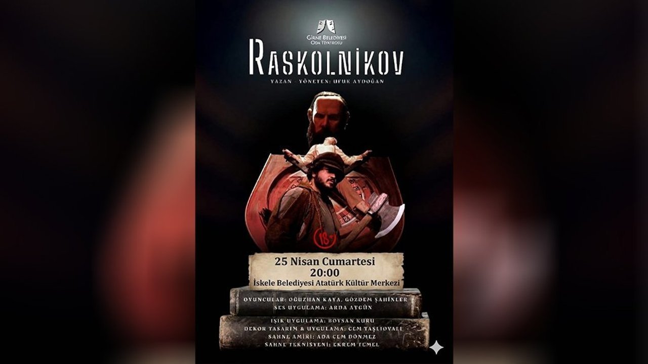 Girne Belediyesi Oda Tiyatrosu'nun sahneye koyduğu 'Raskolnikov' oyunu, İskele Belediyesi'nin düzenlediği 4. Tiyatro Günleri kapsamında izleyiciyle buluşacak.