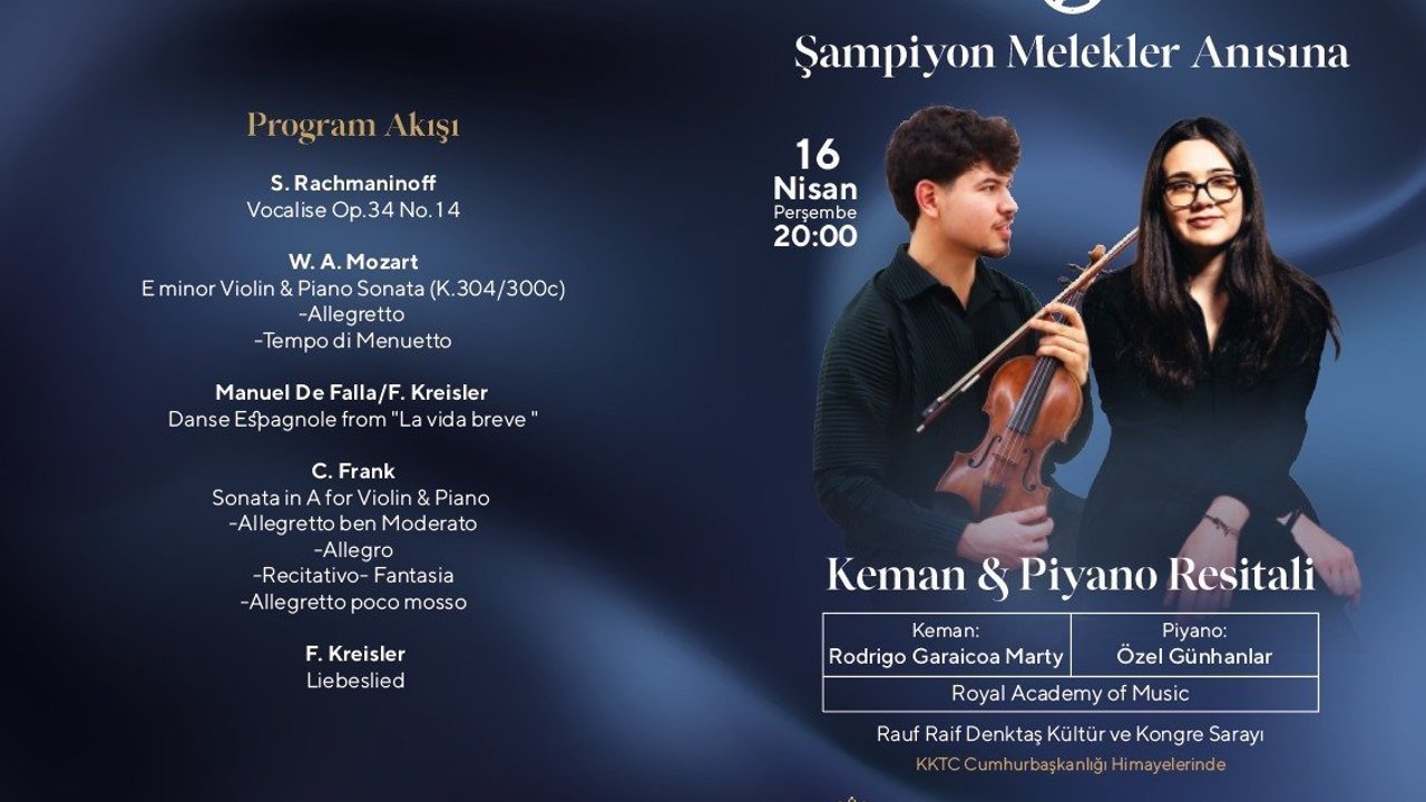 Şampiyon Melekler anısına keman ve piyano resitali düzenleniyor.
