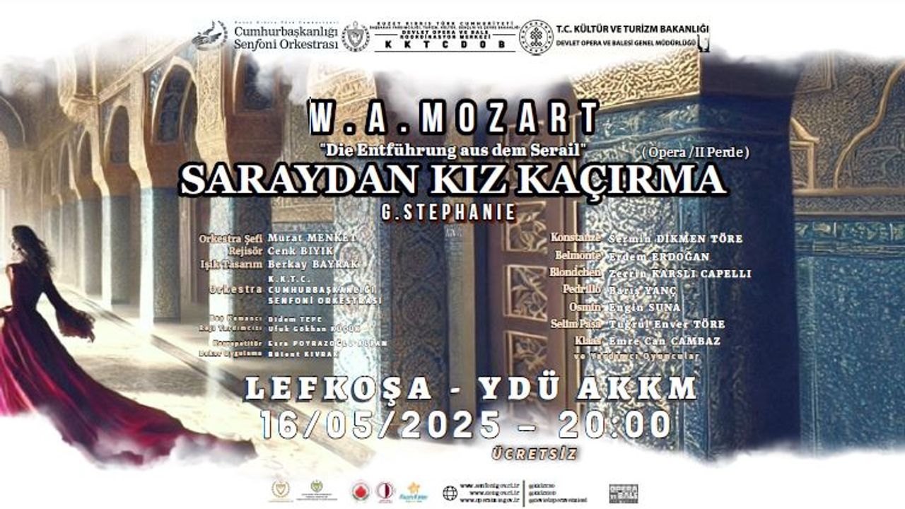 “Saraydan Kız Kaçırma” opera temsili yarın akşam saat 20.00’de Yakın Doğu Üniversitesi (YDÜ) Atatürk Kültür ve Kongre Merkezi’nde ücretsiz olarak sahnelenecek.