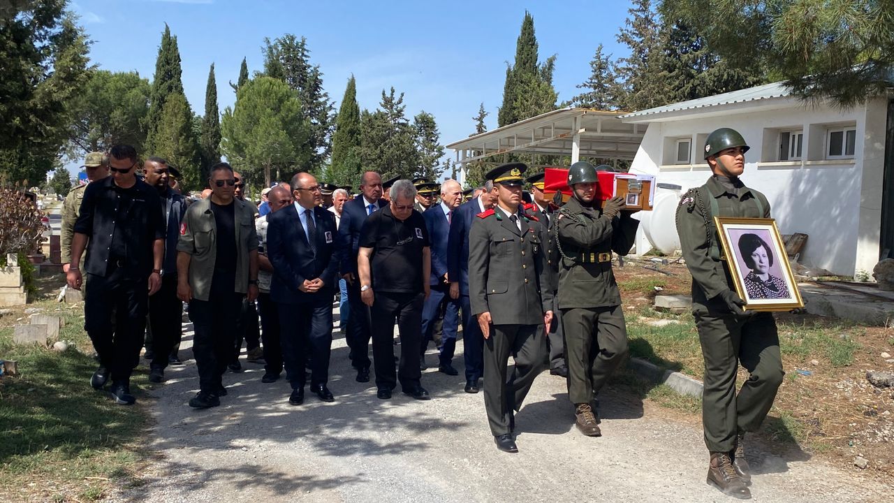 Saygı duruşu ve saygı atışı ile şehitliğe defnedilen şehit Ayşe Ramadan anısına konuşma yapan Cumhurbaşkanı Ersin Tatar, aileye, şehidin fotoğrafını ve tabutu örten KKTC ile TC bayraklarını takdim etti.