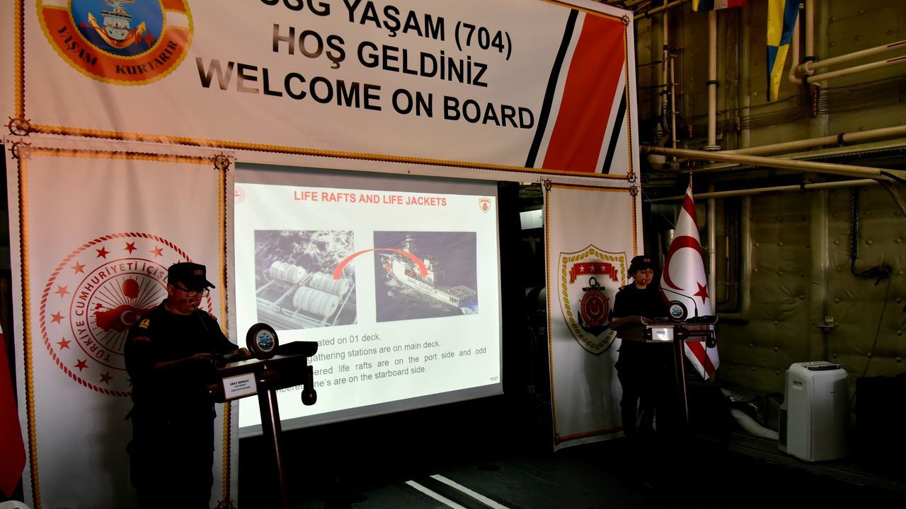 Deniz safhasında iki senaryo uygulanacak. TCSG Yaşam isimli gemide izlenen tatbikat öncesinde, seyir emniyet brifingi verildi.