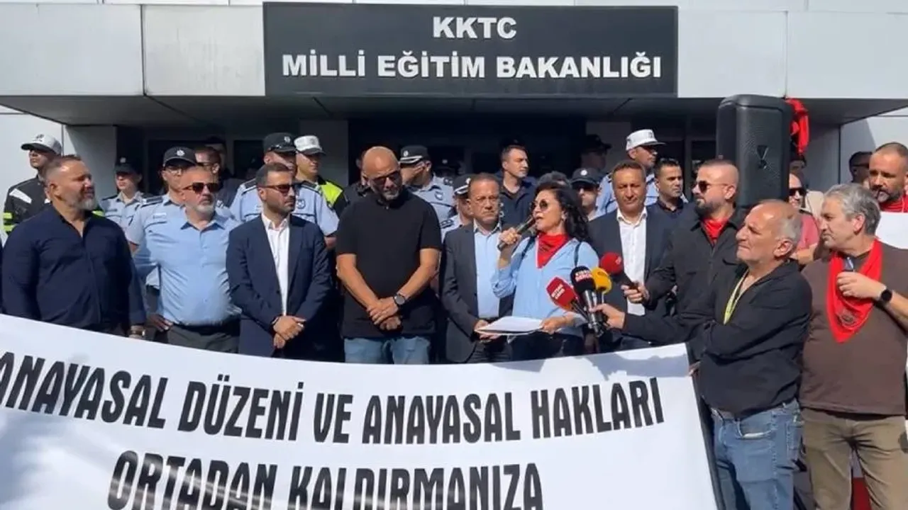 Kıbrıs Türk Orta Eğitim Öğretmenler Sendikası (KTOEÖS), kararı protesto etmek için bugün tüm okullarda greve gitti. Saat 11.00'de sendika binası önünde toplanan öğretmenler, 'baskılara boyun eğmeyeceğiz' sloganlarıyla yürüyüşe geçti.