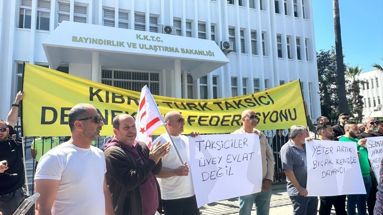 Kıbrıs Türk Taksici Dernekleri Federasyonu Başkanı Murat Karalar öncülüğünde taksiciler, bugün Bayındırlık ve Ulaştırma Bakanlığı önünde eylem başlattı.