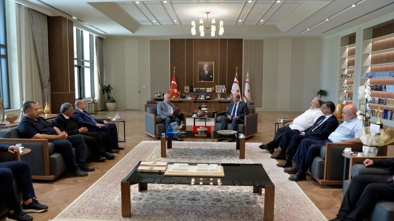 Cumhurbaşkanı Ersin Tatar, Milli Mücadele Vakfı Başkanı Aziz Gülbahar ve Yönetim Kurulu'nu kabul etti.