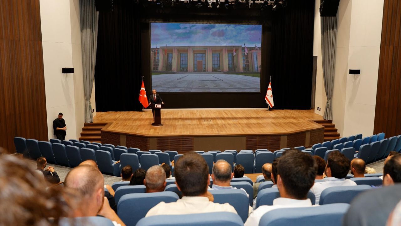 Cumhurbaşkanı Ersin Tatar, Cumhurbaşkanlığı Yerleşkesi yapımında emeği geçen teknik ekibe yönelik teşekkür belgesi ve plaket töreninde yaptığı konuşmada, yerel firmalardan da yararlanarak, Kuzey Kıbrıs Türk Cumhuriyeti’ne kalıcı bir eser kazandırdıklarını belirtti.