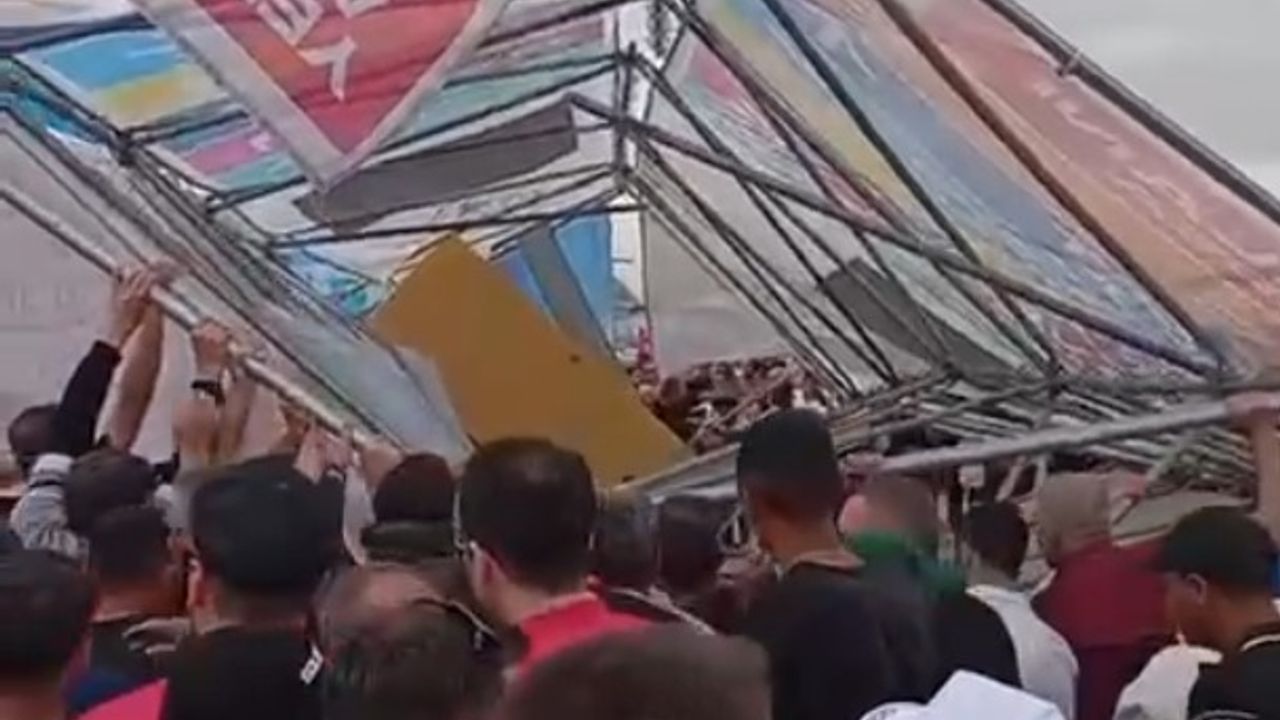 Teknofest KKTC, eski Ercan Havalimanında son hızıyla devam ederken korkutan bir gelişme yaşandı. Kuvvetli rüzgarın etkili olduğu anlarda reklam iskelesi devrildi. Sağlık ekipleri ve güvenlik görevlileri olaya müdahale ediyor.